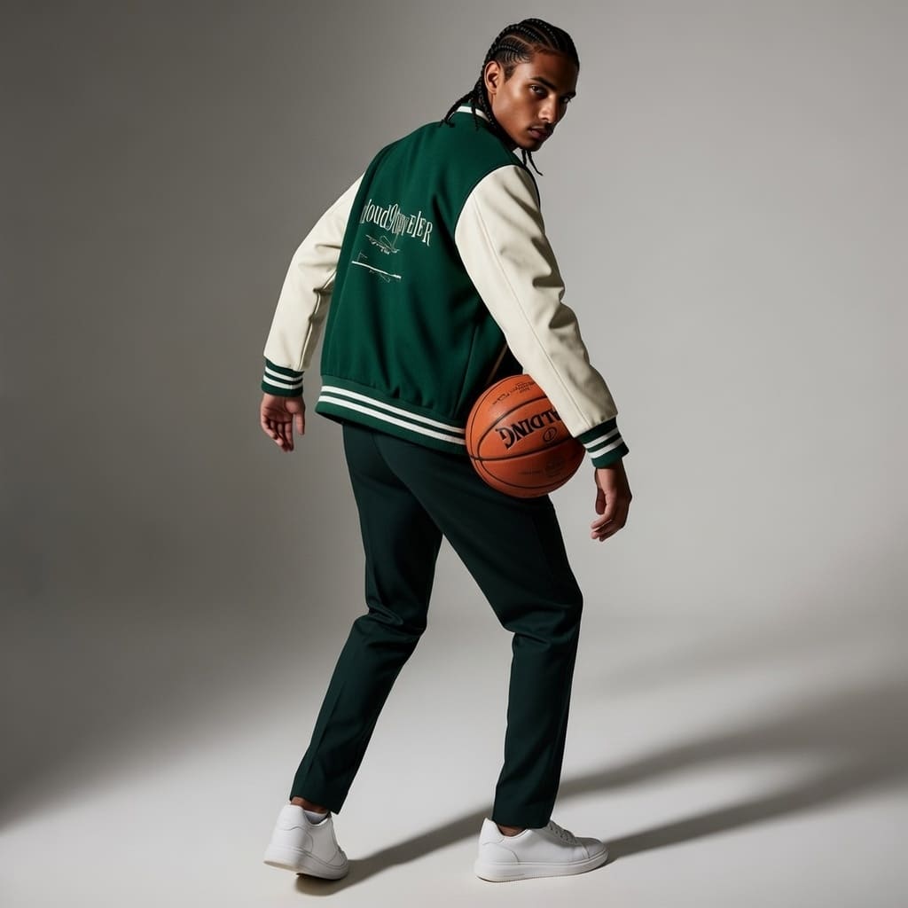 Two-Tone Fleeced Varsity Jacket